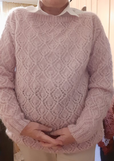Dieses Top nennt sich "Sophia". Die Anleitung dazu ist auf Youtube von Ioanna Meladini unter dem Namen "Sophia". Es ist ganz einfach nachzuhäkeln und ich versuchte es spontan mit dem Garn von Aldi, welches ich günstig erhielt. Der Pulli ist superbequem zu tragen.